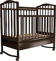 Детская кроватка Агат Золушка 2 New (шоколад); Тип: детская кроватка; Механизм качания: полозья; Материал: массив дерева; Тип древесины: береза; Цвет: коричневый; Колеса: есть; Тип днища: реечное; Длина ложа: 120 см