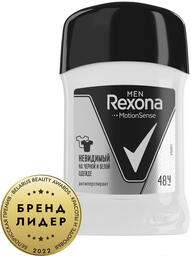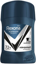 Дезодорант-стик Rexona Men Невидимый на черном и белом (50мл); Тип кожи: для всех типов; Пол: для мужчин; Отдушка: парфюмерная/косметическая; Без белых следов: есть; Объём: 50 мл