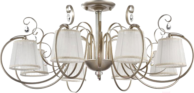 Люстра Freya Simone FR2020-CL-08-BG / FR020-08-G; Количество ламп: 8; Материал каркаса: металл; Материал плафона/абажура: текстиль; Высота: 42.6;42.6 см; Длина: 99.9 см; Ширина: 99.9 см