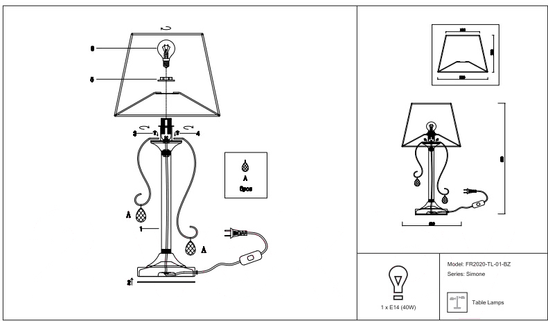 Прикроватная лампа Freya Simone FR2020-TL-01-BZ / FR020-11-R; Материал каркаса: металл; Материал плафона/абажура: ткань; Тип питания: от сети; Общая максимальная мощность: 40 Вт; Высота: 55.9;55.9 см