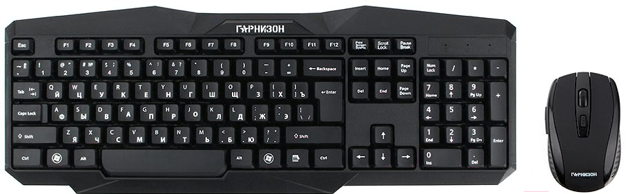 Клавиатура+мышь Гарнизон GKS-120 (черный); Тип клавиатуры: полноразмерная; Максимальное разрешение сенсора: 1200 dpi; Тип сенсора мыши: оптический светодиодный; Тип клавиш мыши: механические; Тип подключения: беспроводной (радиоканал); Тип мыши: полноразмерная