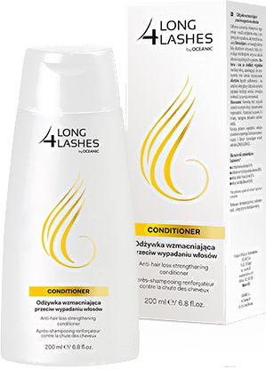 Кондиционер для волос Long4Lashes Укрепляющий против выпадения (200мл); Действие: увлажняющее, питание, придание сияния, восстанавливающее, смягчающее, укрепляющее, против выпадения волос, успокаивающее, облегчает расчесывание, стимуляция роста волос; Тип волос: склонные к выпадению, ослабленные; Активные ингредиенты: биотин, пантенол, кофеин; Объём: 200 мл