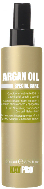 Кондиционер для волос Kaypro Special Care Argan Oil питательный c аргановым маслом 10 в 1 (200мл); Действие: увлажняющее, питание, придание сияния, смягчающее, антистатическое, защита от солнца, придание объёма; Тип волос: сухие, поврежденные, с секущимися кончиками; Активные ингредиенты: масло арганы; Объём: 200 мл