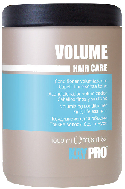 Кондиционер для волос Kaypro Hair Care Volume для объема тонких и безжизненных волос (1000мл); Действие: укрепляющее, придание объёма, облегчает расчесывание; Тип волос: для всех типов, тонкие; Активные ингредиенты: пантенол, протеины; Объём: 1000 мл