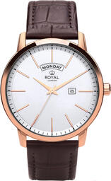 Часы наручные мужские Royal London 41391-04; Тип: часы наручные мужские; Механизм: кварцевый; Материал корпуса: нержавеющая сталь; Материал браслета: натуральная кожа; Водозащита: есть, 50 м; Стекло: минеральное; Ширина корпуса: 44 мм; Индикация времени: стрелки; Доп. индикация времени: секунды, дата