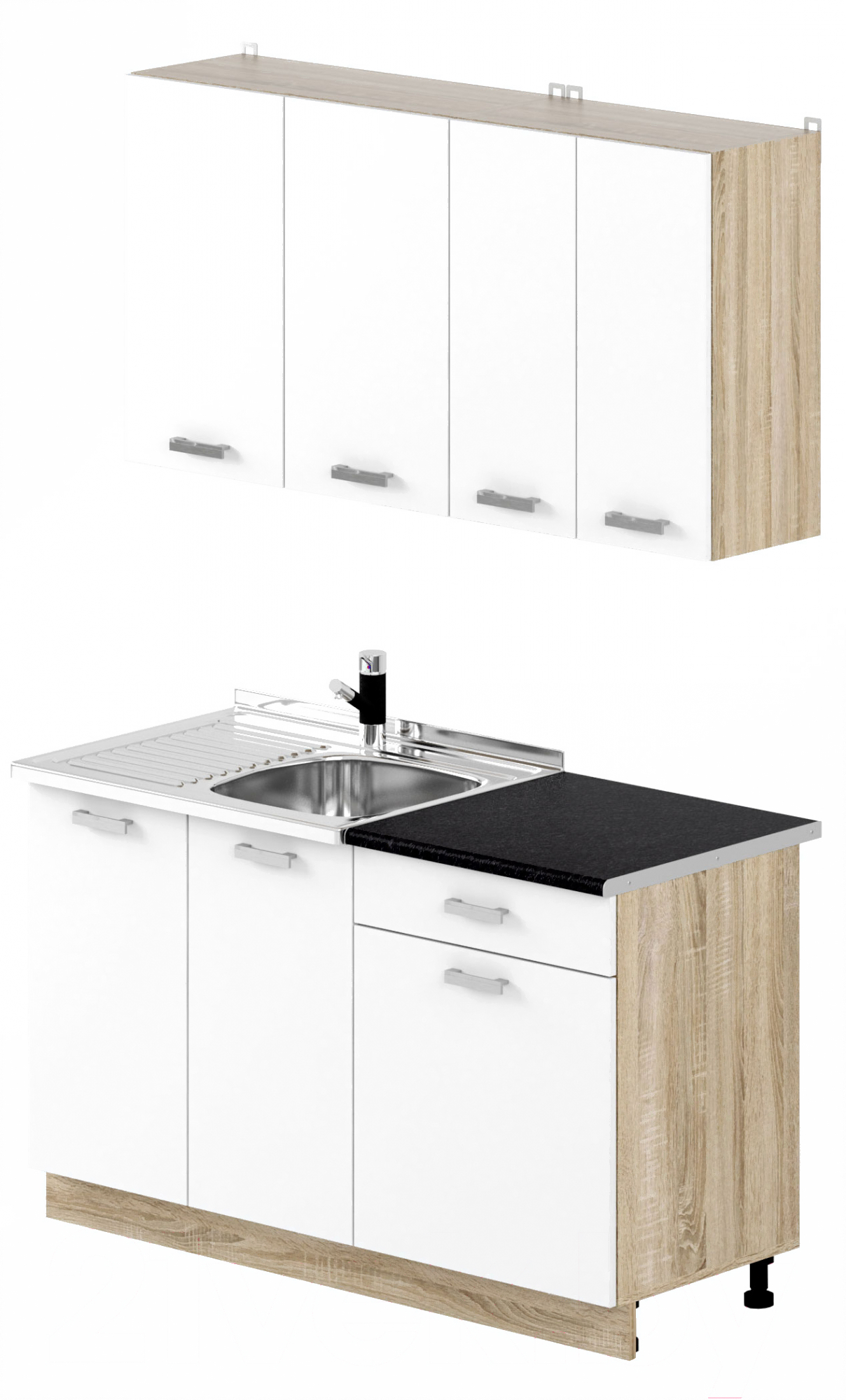 Готовая кухня Славянская столица 21-2 (дуб сонома/белый); Длина кухни: 140 см; Конструкция кухни: линейная; Материал фасада: ЛДСП; Столешница: литая; Ширина шкафа под мойку: 80 см; Материал каркаса: ЛДСП; Установка мойки: накладная мойка; Ширина кухни: 60 см; Тип фасада: прямой