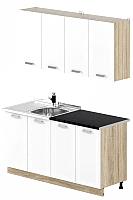 Готовая кухня Славянская столица 23-2 (дуб сонома/белый); Длина кухни: 160 см; Конструкция кухни: линейная; Материал фасада: ЛДСП; Столешница: литая; Ширина шкафа под мойку: 80 см; Материал каркаса: ЛДСП; Установка мойки: накладная мойка; Ширина кухни: 60 см; Тип фасада: прямой