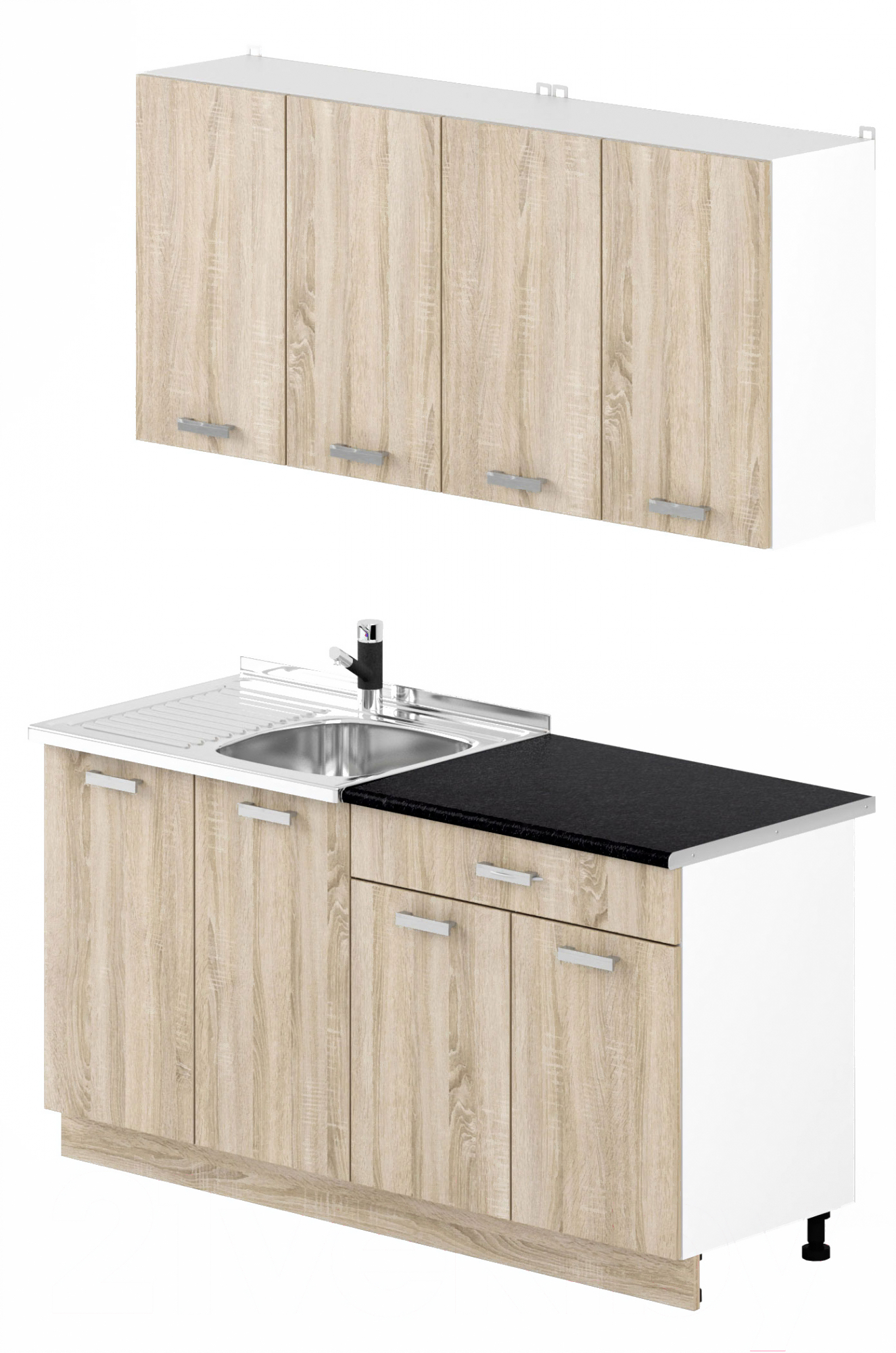 Готовая кухня Славянская столица 24-1 (белый/дуб сонома); Длина кухни: 160 см; Конструкция кухни: линейная; Материал фасада: ЛДСП; Столешница: литая; Ширина шкафа под мойку: 80 см; Материал каркаса: ЛДСП; Установка мойки: накладная мойка; Ширина кухни: 60 см; Тип фасада: прямой