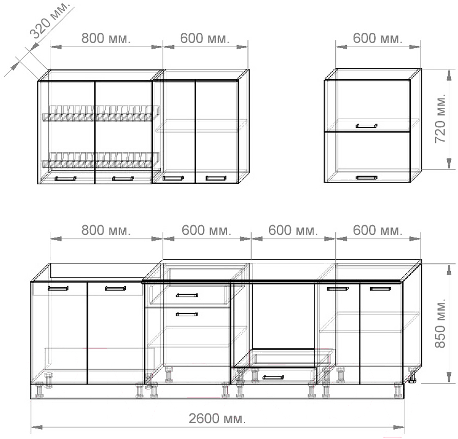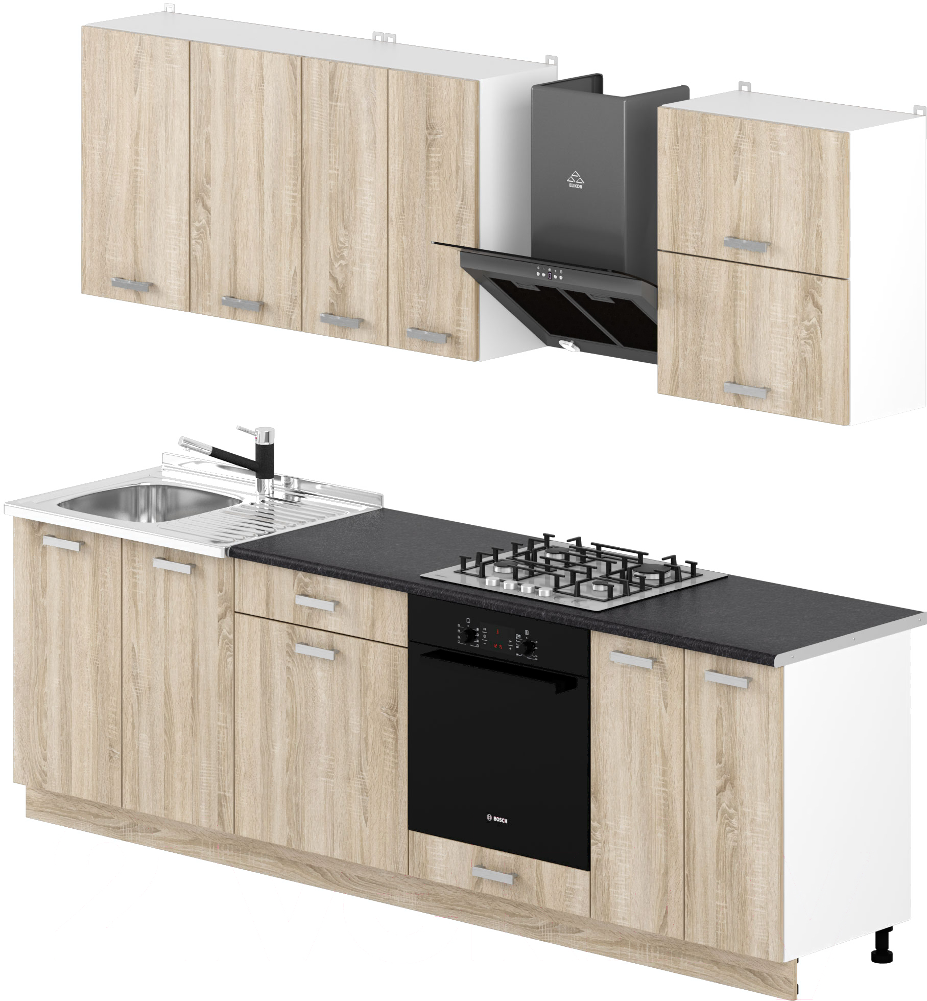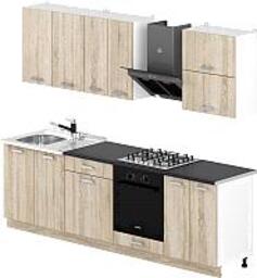 Готовая кухня Славянская столица 52-1 (белый/дуб сонома); Длина кухни: 260 см; Конструкция кухни: линейная; Материал фасада: ЛДСП; Столешница: литая; Ширина шкафа под мойку: 80 см; Материал каркаса: ЛДСП; Установка мойки: накладная мойка; Ширина кухни: 60 см; Тип фасада: прямой