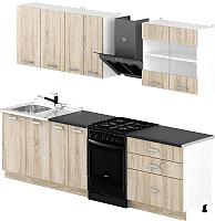 Готовая кухня Славянская столица 49-1 (белый/дуб сонома); Длина кухни: 220 см; Конструкция кухни: линейная; Материал фасада: ЛДСП; Столешница: отдельная на каждый шкаф; Ширина шкафа под мойку: 80 см; Материал каркаса: ЛДСП; Установка мойки: накладная мойка; Ширина кухни: 60 см; Тип фасада: прямой