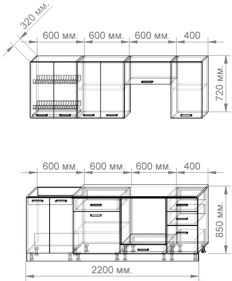 Готовая кухня Славянская столица 47-2 (дуб сонома/белый); Длина кухни: 220 см; Конструкция кухни: линейная; Материал фасада: ЛДСП; Столешница: литая; Ширина шкафа под мойку: 60 см; Материал каркаса: ЛДСП; Установка мойки: накладная мойка; Ширина кухни: 60 см; Тип фасада: прямой
