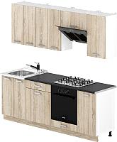 Готовая кухня Славянская столица 44-1 (белый/дуб сонома); Длина кухни: 220 см; Конструкция кухни: линейная; Материал фасада: ЛДСП; Столешница: литая; Ширина шкафа под мойку: 60 см; Материал каркаса: ЛДСП; Установка мойки: накладная мойка; Ширина кухни: 60 см; Тип фасада: прямой