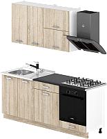 Готовая кухня Славянская столица 42-1 (белый/дуб сонома); Длина кухни: 200 см; Конструкция кухни: линейная; Материал фасада: ЛДСП; Столешница: литая; Ширина шкафа под мойку: 80 см; Материал каркаса: ЛДСП; Установка мойки: накладная мойка; Ширина кухни: 60 см; Тип фасада: прямой