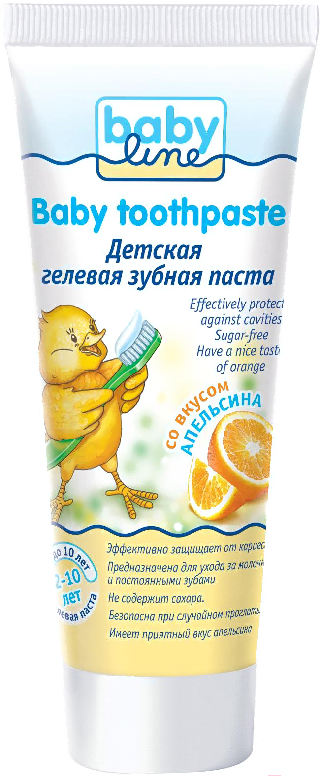 Зубная паста Babyline DB012 со вкусом апельсина, с низким содержанием фтора с 2-х лет (75мл); Назначение: универсальное; Действие: очищающее, защита от кариеса; Отдушка: цитрусовая; Объем: 75 мл; Возраст: для детей