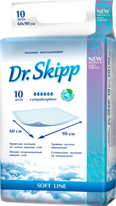 Пеленки одноразовые Dr.Skipp 60x90 (10шт); Количество: 10 шт; Непромокаемая: есть; Впитываемость: 3 капли; Ширина пеленки: 60 см; Длина пеленки: 90 см
