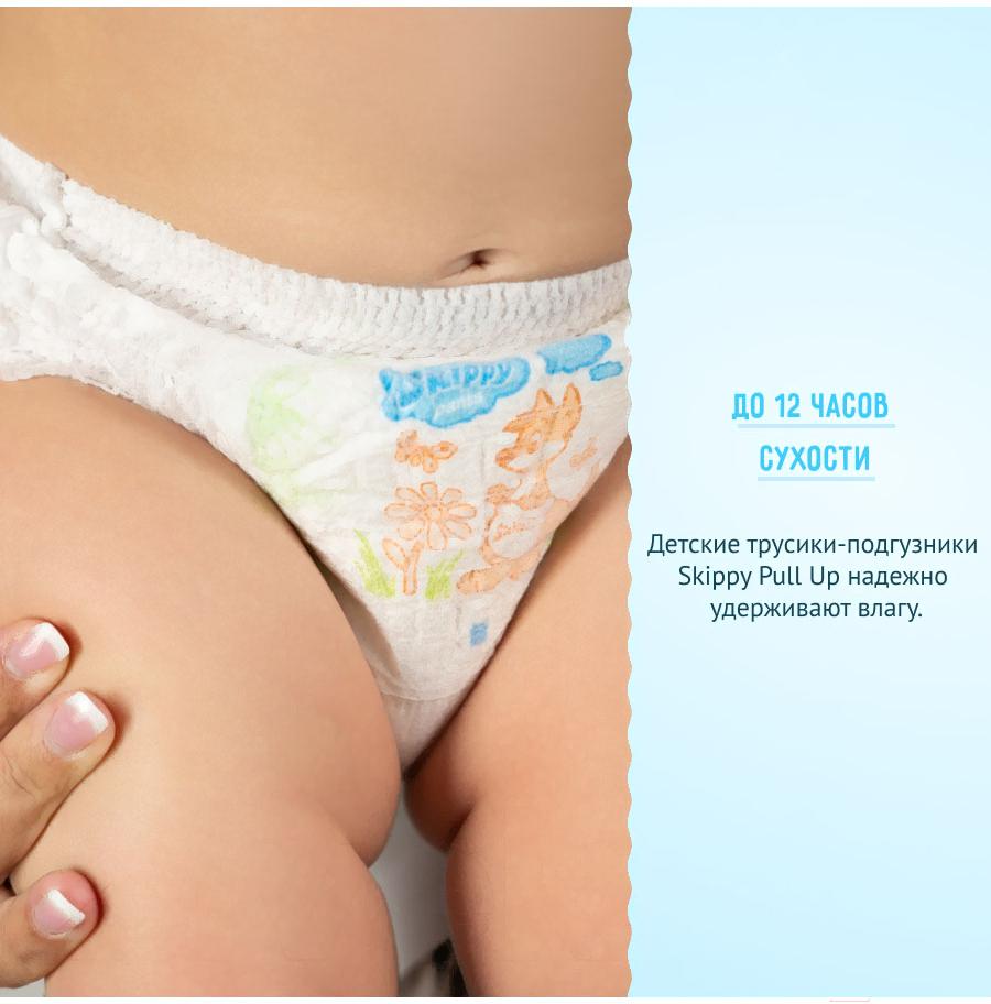 Подгузники-трусики Skippy Pull-Up 6 (44шт); Пол: унисекс; Назначение: для активного возраста, для приучения к горшку; Вес ребенка: 16;25 кг; Кол-во в упаковке: 44 шт.; Размер детских подгузников: 6 (Extra Large)