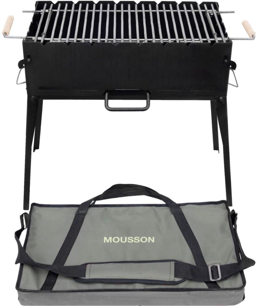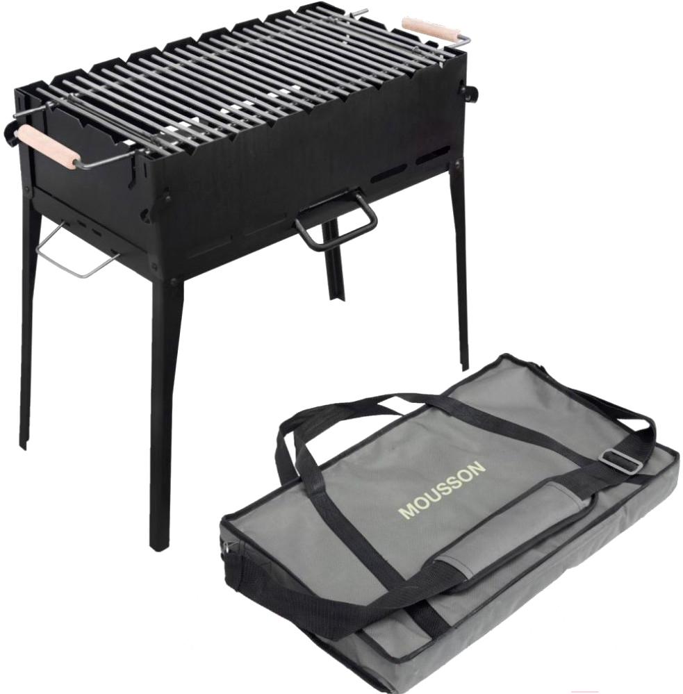 Мангал Mousson Prometeo Q 8 VBR; Конструкция: разборная; Материал: сталь; Вид используемого топлива: готовый уголь, дрова; Функции: гриль; Высота: 52.5 см; Длина: 52.5 см; Ширина: 30 см