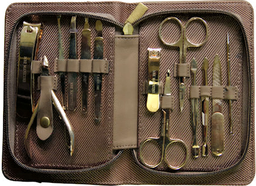 Маникюрный набор Mertz A6047; Материал: металл; Количество предметов в наборе: 13; В наборе: пилка для ногтей, ножницы для кутикулы, кусачки для кутикулы, ножницы для ногтей, книпсер, триммер для кутикулы, шабер, пушер, палочка для отодвигания кутикулы