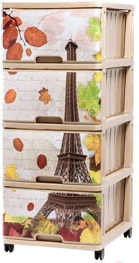 Комод пластиковый Dunya Париж осень; Тип: комод пластиковый; Материал фасада: пластик, полипропилен; Материал каркаса: пластик; Высота: 100 см; Ширина: 40 см; Глубина: 50 см