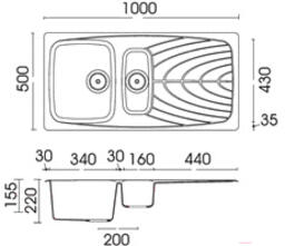 Мойка кухонная Elleci Master 475 Bianco Antico G62 / LGM47562; Диаметр сливного отверстия: 3.5"; Длина/диаметр мойки: 98 см; Ширина мойки: 48 см; Глубина чаши: 23 см; Отверстие для смесителя: есть
