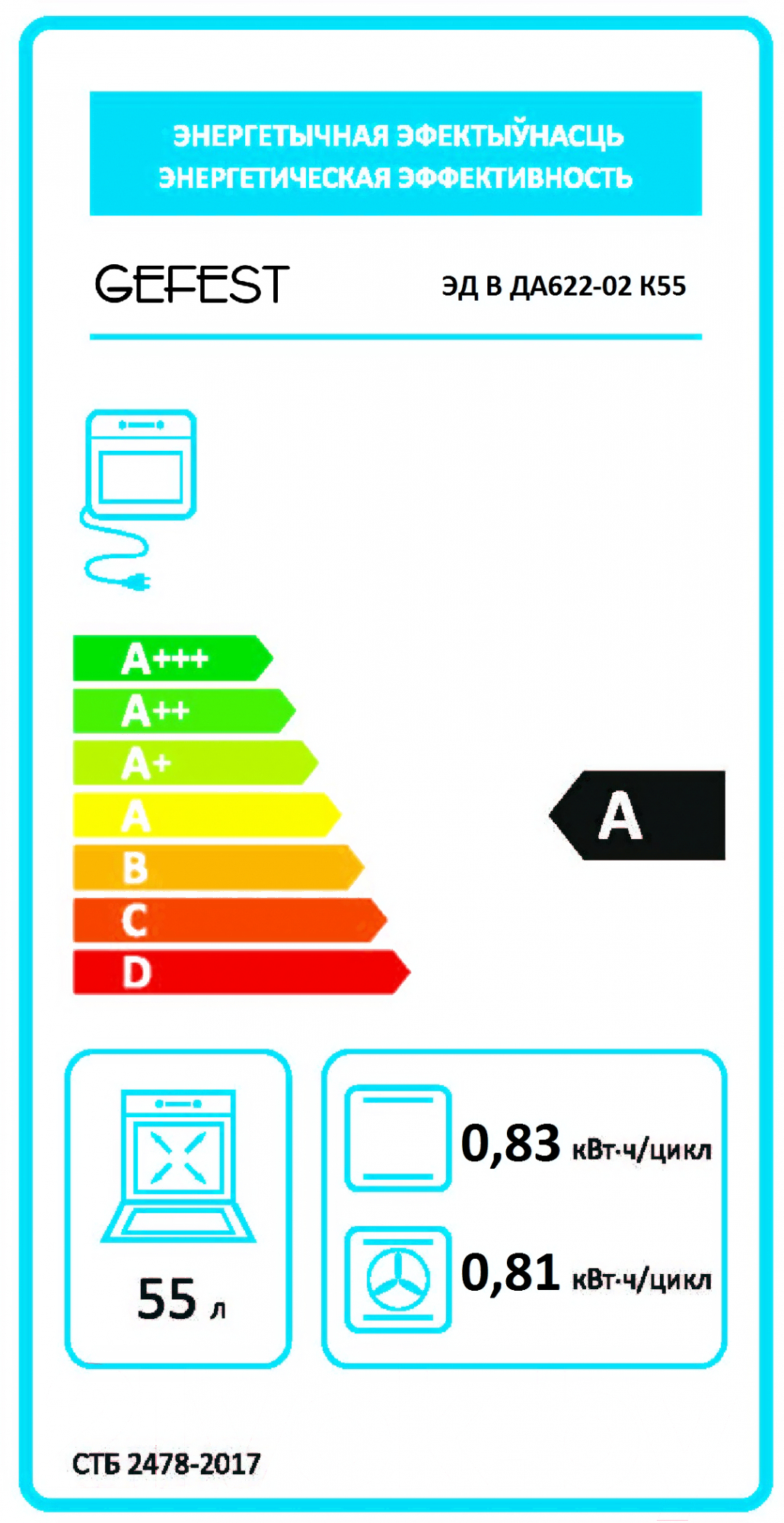 Электрический духовой шкаф Gefest ДА 622-02 К55; Тип: электрический духовой шкаф; Установка: независимая; Объём: 55 л; Очистка: ручная; Класс энергопотребления: A; Управление: электронное; Максимальная температура: 250 °C; Количество режимов нагрева: 5