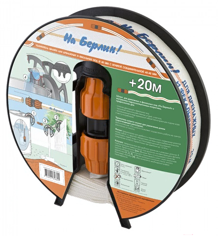Шланг удлинительный Джилекс На Берлин! / 9033 (40x40); Область применения: для сада; Назначение: для подачи воды, для полива; Вид шланга: текстильный; Материал: ПВХ, полиэстр; Длина шланга: 20;20 м