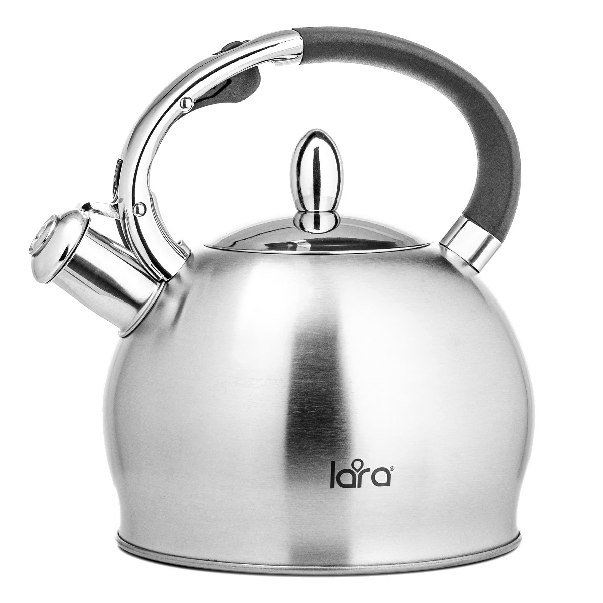 Чайник со свистком Lara LR00-10 (матовый); Тип: чайник со свистком; Основной материал: металл; Материал ручки: нейлон; Цвет: нержавеющая сталь; Объем: 3.1 л; Использование на плите: да, на газовой, на электрической, на индукционной