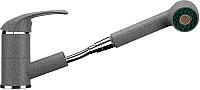 Смеситель Ulgran U-002 (309 темно-серый); Материал: латунь; Длина (вылет) излива: 202;202 мм; Высота излива: 123;123 мм; Назначение: для кухонной мойки; Монтаж: на раковину или столешницу; Механизм: однозахватный; Поворотный излив: есть; Выдвижной излив: есть