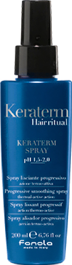 Спрей для укладки волос Fanola Keraterm Hair Ritual термоактивный разглаж. д/поврежденных волос (200мл); Действие: термозащита, разглаживающее, смягчающее, восстанавливающее; Тип волос: поврежденные; Объём: 200 мл