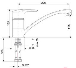 Смеситель Ulgran U-004 (302 песочный); Материал: латунь; Длина (вылет) излива: 224;224 мм; Высота излива: 135;135 мм; Назначение: для кухонной мойки; Монтаж: на раковину или столешницу; Механизм: однозахватный; Поворотный излив: есть