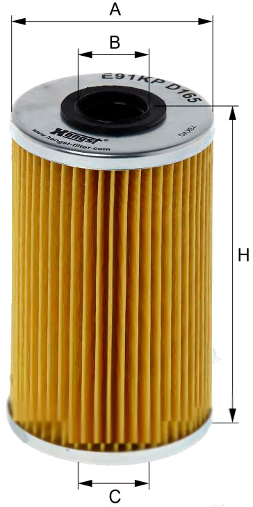 Топливный фильтр Hengst E91KP D165; Исполнение фильтра: вставка; Диаметр корпуса: 70 мм; Высота: 120 мм