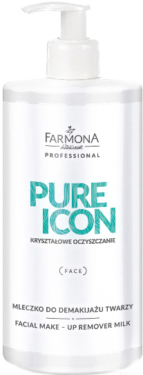 Молочко для снятия макияжа Farmona Professional Pure Icon (500мл); Зона применения: всё лицо; Действие: удаление макияжа, увлажняющее, смягчающее; Тип кожи: для всех типов; Возраст: 18+; Активные ингредиенты: пантенол, экстракт водорослей; Объём: 500 мл