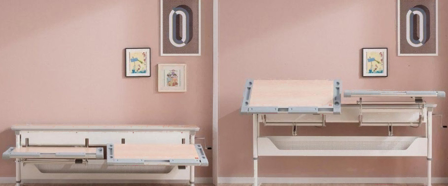 • Механизм регулировки плавный, газлифтовый (регулировка наклонной часи), механический (с помощью ручки; высота всей столешницы)