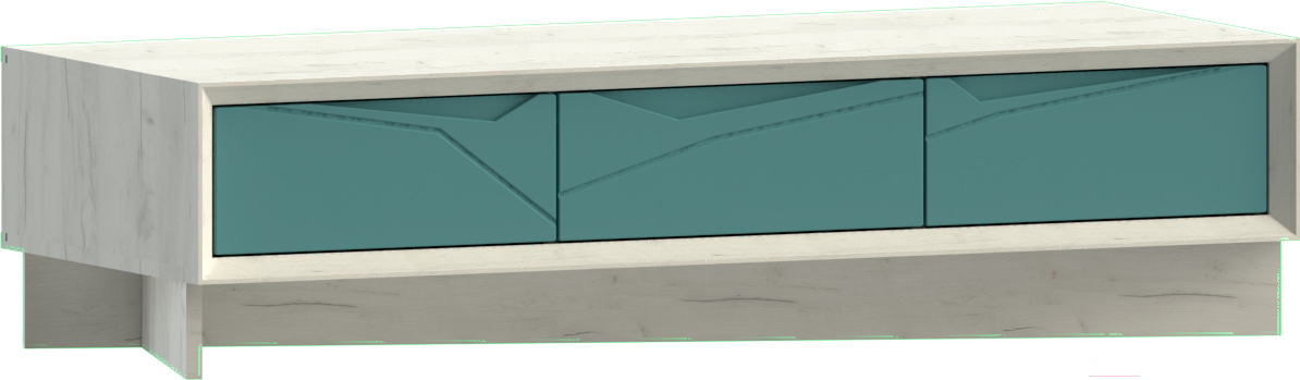 Тумба WellMaker Куб ТН-150 (аляска/морской); Материал фасада: ЛМДФ; Материал каркаса: ЛДСП; Ящики: 3 шт; Высота: 33.9 см; Ширина: 137.4 см; Глубина: 52.8 см