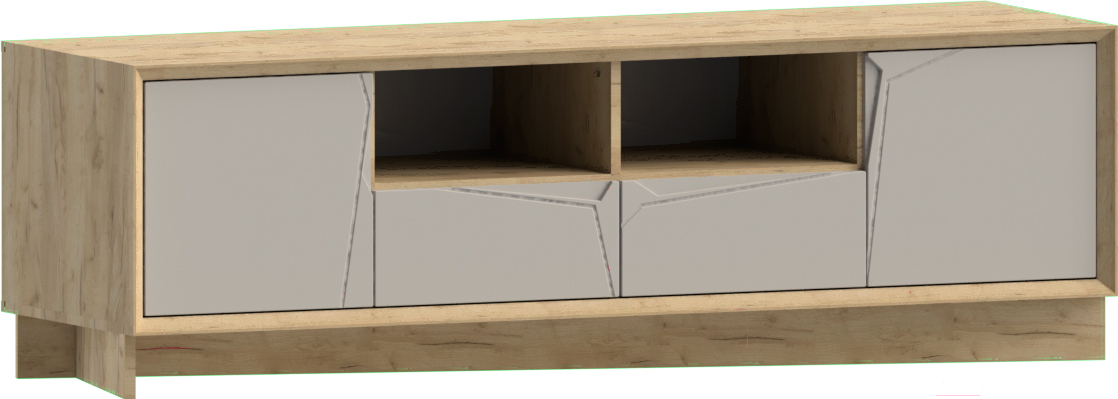 Тумба WellMaker Куб ТВн-200 (аризона/кварцевый); Материал фасада: ЛМДФ; Материал каркаса: ЛДСП; Ящики: 4 шт; Полки: 2 шт; Высота: 56.8 см; Ширина: 183.2 см; Глубина: 52.8 см