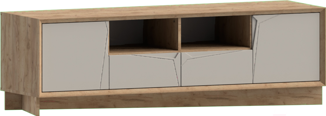 Тумба WellMaker Куб ТВн-200 (техас/кварцевый); Материал фасада: ЛМДФ; Материал каркаса: ЛДСП; Ящики: 4 шт; Полки: 2 шт; Высота: 56.8 см; Ширина: 183.2 см; Глубина: 52.8 см