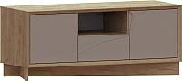 Тумба WellMaker Куб ТВн-150 (аризона/кварцевый); Материал фасада: ЛМДФ; Материал каркаса: ЛДСП; Ящики: 3 шт; Полки: 1 шт; Высота: 56.8 см; Ширина: 137.4 см; Глубина: 52.8 см