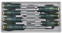Набор отверток Force 20713; Количество в наборе: 7 шт; Вид отвертки: простая; Вид наконечника: прямой шлиц Slotted (SL), крестовой Philips (PH); Размер наконечника: PH2, SL5.5, PH1, SL6.5, SL4, SL8, PH3