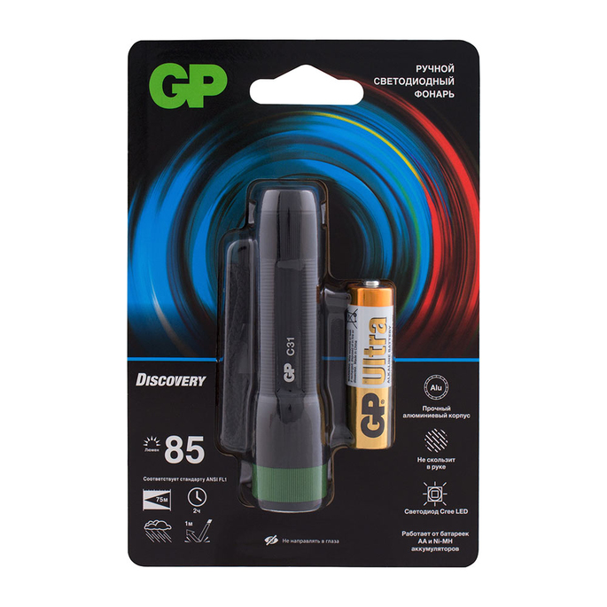 Фонарь GP C31BE ручной алюминиевый корпус 85Лм 1хАА