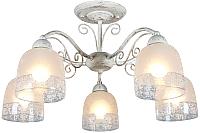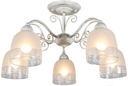 Люстра Omnilux Ferraro OML-54907-05; Количество ламп: 5; Материал каркаса: металл; Материал плафона/абажура: стекло; Высота: 32;32 см; Длина: 57 см; Ширина: 57 см