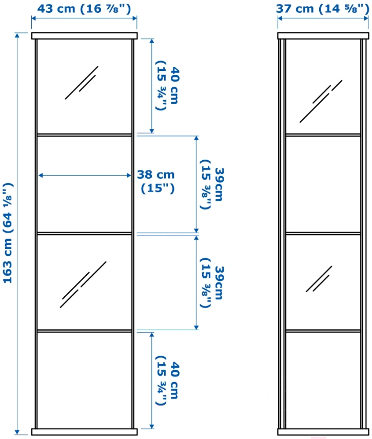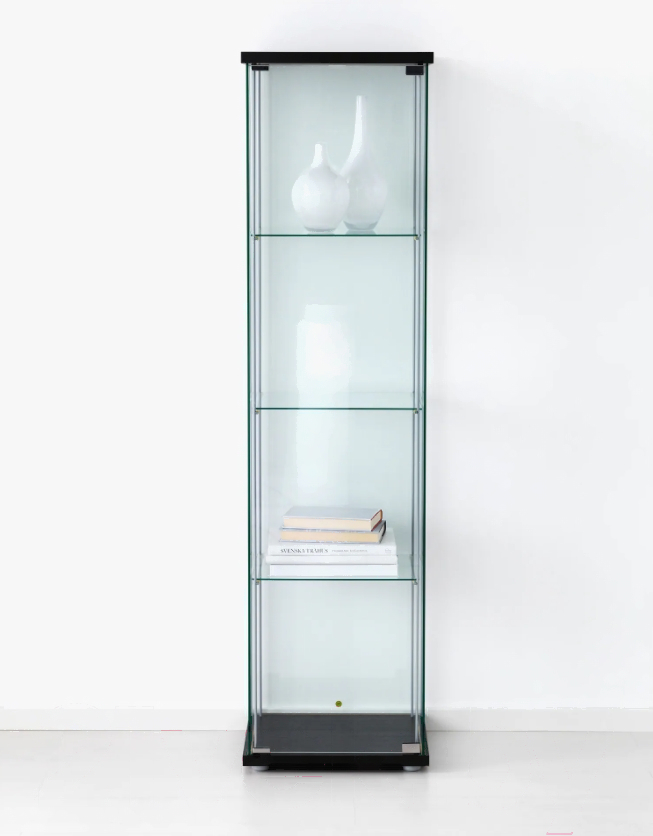 Шкаф-пенал с витриной Ikea Детольф 703.833.59; Назначение: для жилой комнаты; Ширина: 43 см; Материал фасада: стекло; Материал каркаса: стекло, ДСП; Наполнение: полки; Высота: 163 см; Глубина: 37 см