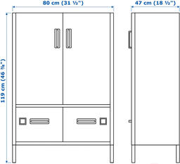 Тумба Ikea Идосен 703.609.56; Материал фасада: металл; Материал каркаса: металл; Ящики: 2 шт; Полки: 4 шт; Высота: 119 см; Ширина: 80 см; Глубина: 47 см