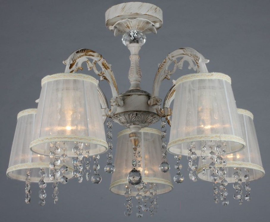 Люстра Omnilux Bologna OML-30007-05; Количество ламп: 5; Материал каркаса: металл; Материал плафона/абажура: текстиль; Высота: 40;40 см; Длина: 50 см; Ширина: 50 см
