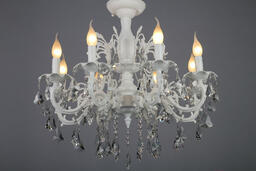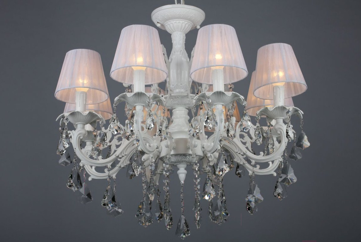 Люстра Omnilux Catanzaro OML-30807-08; Количество ламп: 8; Материал каркаса: металл, хрусталь; Материал плафона/абажура: текстиль; Высота: 64;150 см; Длина: 70 см; Ширина: 70 см