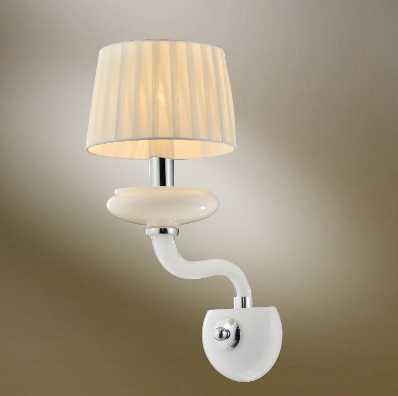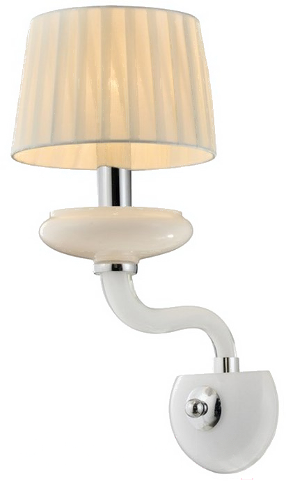 Бра Omnilux Stella OML-86001-01; Материал каркаса: металл, стекло; Материал плафона/абажура: текстиль; Подключение: к осветительной сети; Включение: выносной выключатель; Высота: 40 см; Длина: 26 см; Ширина: 18 см