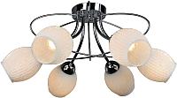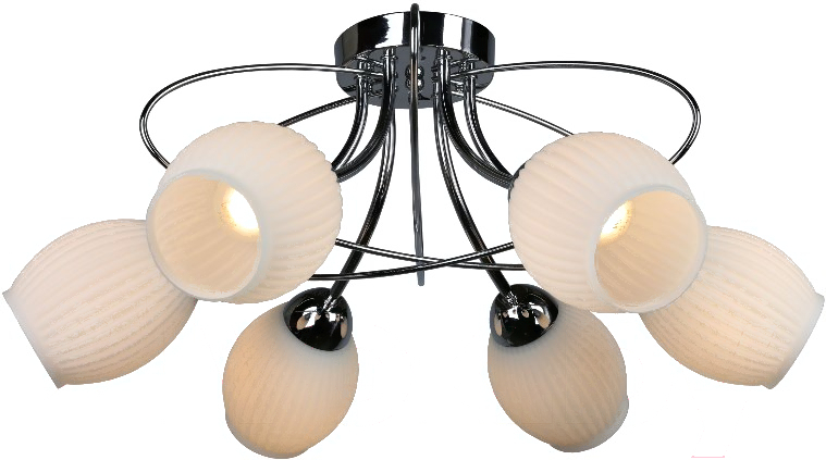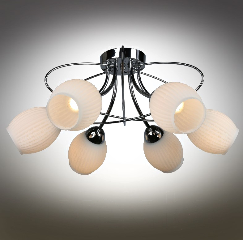 Люстра Omnilux Calevace OML-54307-06; Количество ламп: 6; Материал каркаса: металл; Материал плафона/абажура: стекло; Высота: 25;25 см; Длина: 61 см; Ширина: 61 см