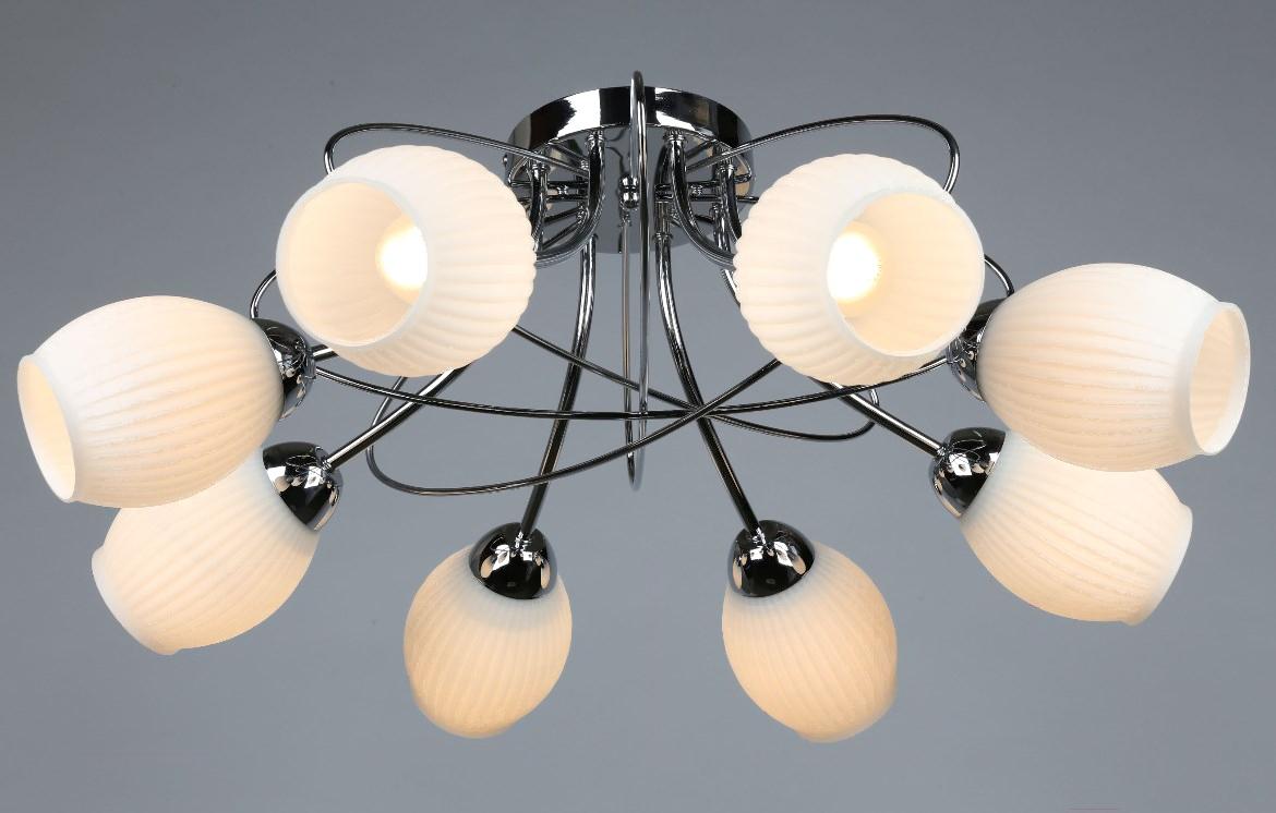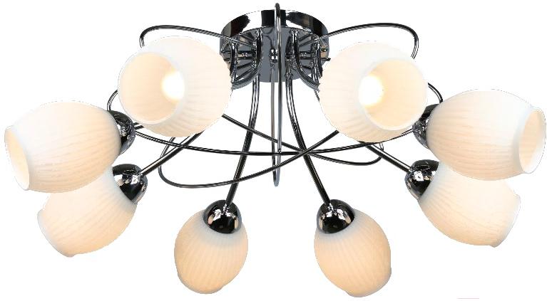 Люстра Omnilux Calevace OML-54307-08; Количество ламп: 8; Материал каркаса: металл; Материал плафона/абажура: стекло; Высота: 27;27 см; Длина: 70 см; Ширина: 70 см