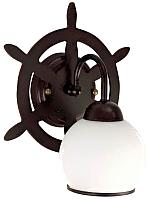 Бра Omnilux Fronteira OML-50501-01; Материал каркаса: металл, дерево; Материал плафона/абажура: металл, стекло; Подключение: к осветительной сети; Включение: выносной выключатель; Высота: 28 см; Длина: 18 см; Ширина: 24 см