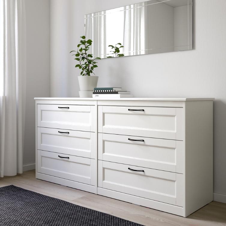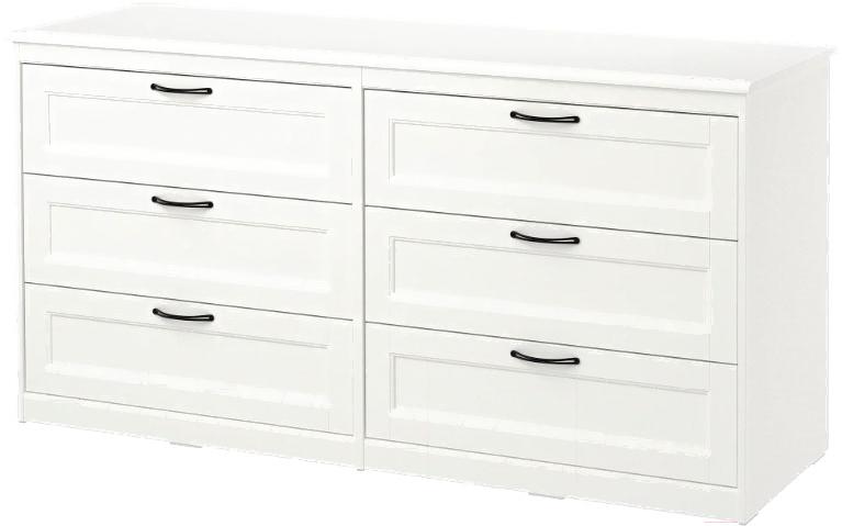 Комод Ikea Сонгесанд 903.667.97; Материал фасада: ДВП; Материал каркаса: ДВП, ДСП; Ящики: 6 шт; Высота: 81 см; Ширина: 161 см; Глубина: 50 см