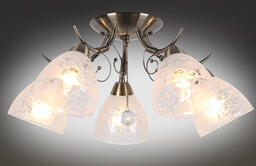 Люстра Omnilux Casagliana OML-53807-05; Количество ламп: 5; Материал каркаса: металл; Материал плафона/абажура: стекло; Высота: 22.5;22.5 см; Длина: 53.5 см; Ширина: 53.5 см